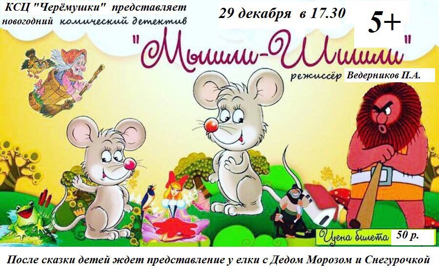 28.12 - 10.00 "Мышли-Шишли" Новогодние театрализованное представление для детей 2 кл. 12.00 "Мышли-Шишли" Новогодние театрализованное представление для детей 3 кл.